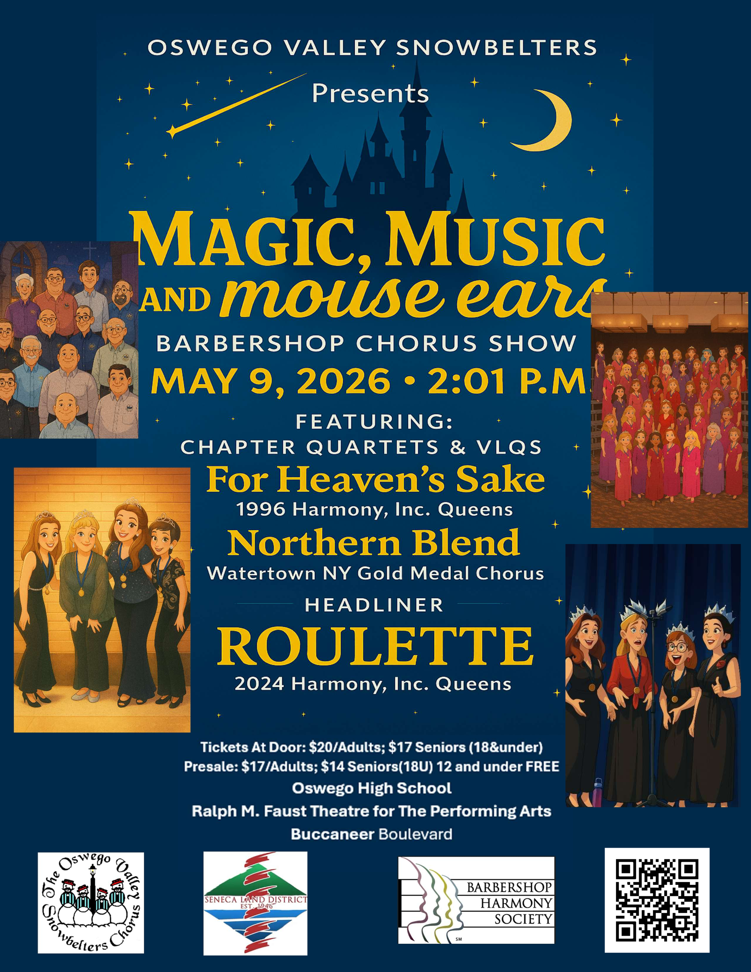 Get ready for an unforgettable evening of harmony, heart, and a little bit of pixie dust! The Oswego Valley Snowbelters proudly present “Magic, Music, and Mouse Ears,” a high-energy concert celebration inspired by beloved animated classics and timeless favorites.